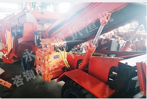 2、輸送系統(tǒng),為適應(yīng)多分枝巷道工作環(huán)境,可配裝折疊式輸送架,通過控制油缸的伸縮來實(shí)現(xiàn)輸送架折疊,以調(diào)節(jié)整機(jī)長度,方便扒渣機(jī)在巷道內(nèi)轉(zhuǎn)彎、轉(zhuǎn)場。